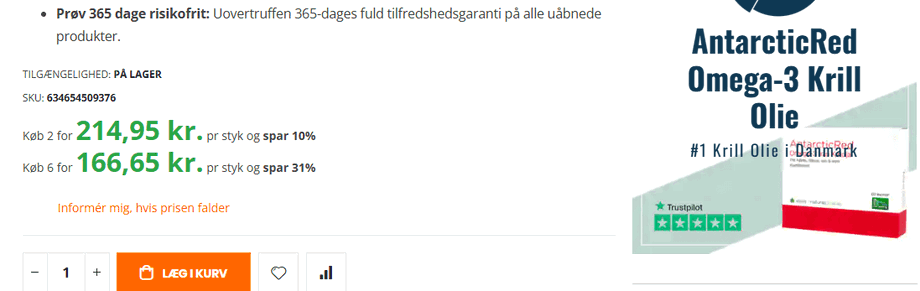 Screenshot af produktsiden eller kurven hvor “mængderabat”-prisen vises.